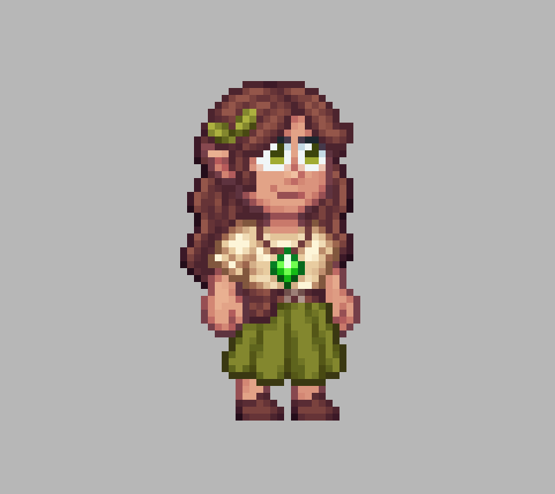She will be found in the Crystal Hub, where she’ll sell crop seeds and buy your produce. Unlike her sister, she is always daydreaming and doesn’t seem to enjoy… working.